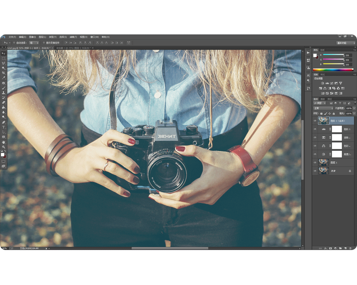 比如上图,为了给你们演示,我简单的对某个图片进行了调整,这时候我想切换到原图看看Ps后的效果与原图的对比,通常做法是不是直接关掉图层面板那些小眼睛,这个办法虽然粗暴有效,但是我这个文件里的图层还不多,你要是有几百个图层…