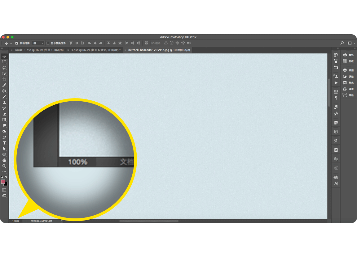 对于经常用Ps的同学,抓手工具肯定最亲和了,几乎你们移动视图的时候,都要用到它,按住空格键这种操作肯定都知道了,今天要跟你们说的是抓手的另一个方便的操作。