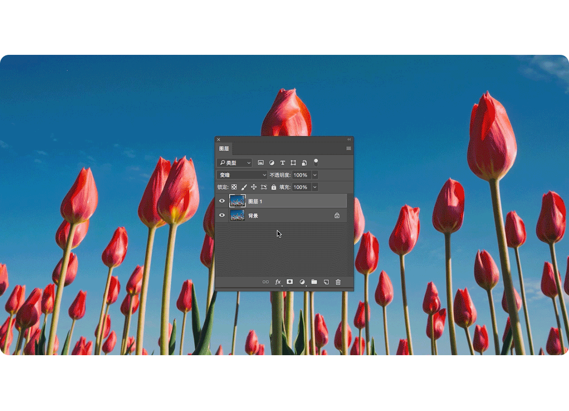 我们先来打开一张图,接下来我要做的就是改变一下图层间的混合模式,但是这个你直接拿鼠标点一下混合模式的下拉列表就行了。
