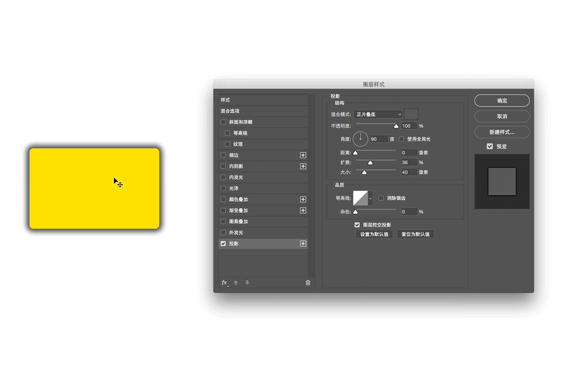 图层样式各位也不陌生了,说陌生的可以去罚站了,图层样式里添加投影的时候,有个很巧妙的小东西,也许你们没有注意到。