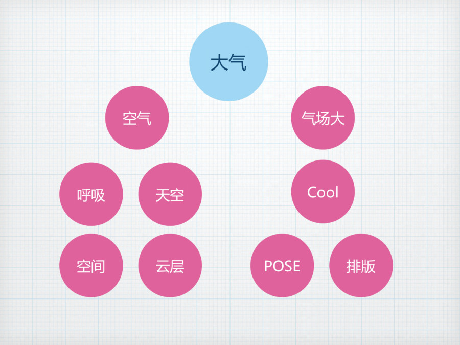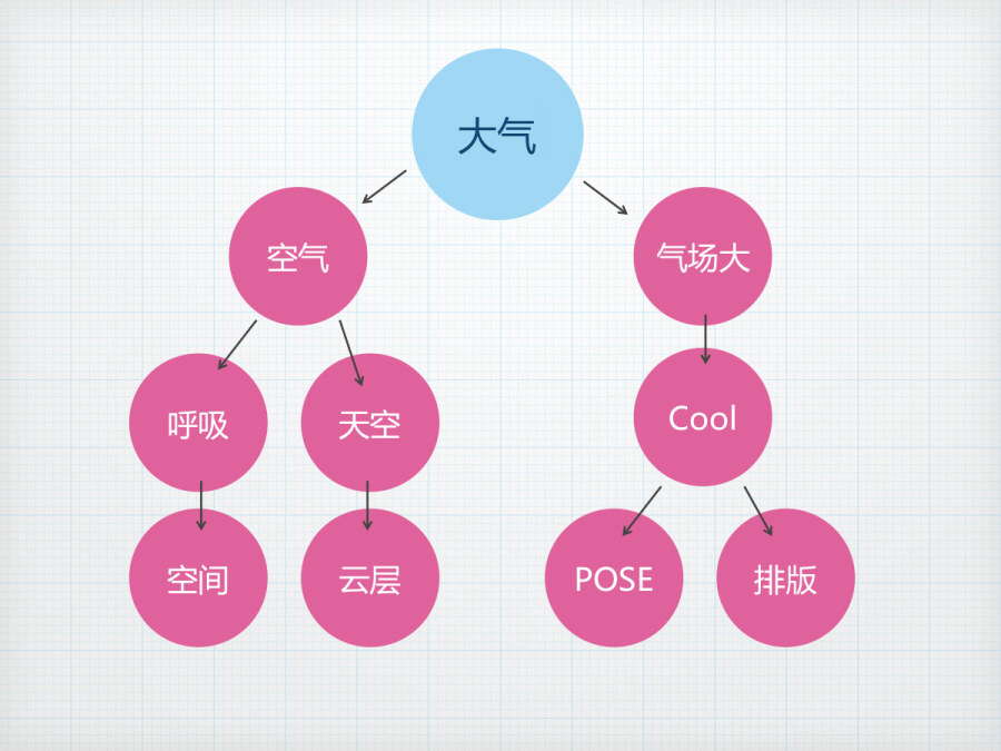 我们回到刚才的这个图,之前,我们通过联想,把大气分解成了很多的点,每一个点都是一个关键词,都是我们可以利用的。