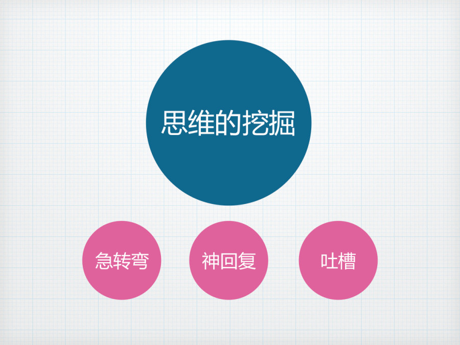 这个过程就是联想和思维跳跃的过程,我们想要的灵感,经常迸发的一个方式,就是在这样的联想中,撞到了与原来的关键点有关联的那个点上,给我们带来的灵光一闪的方向。