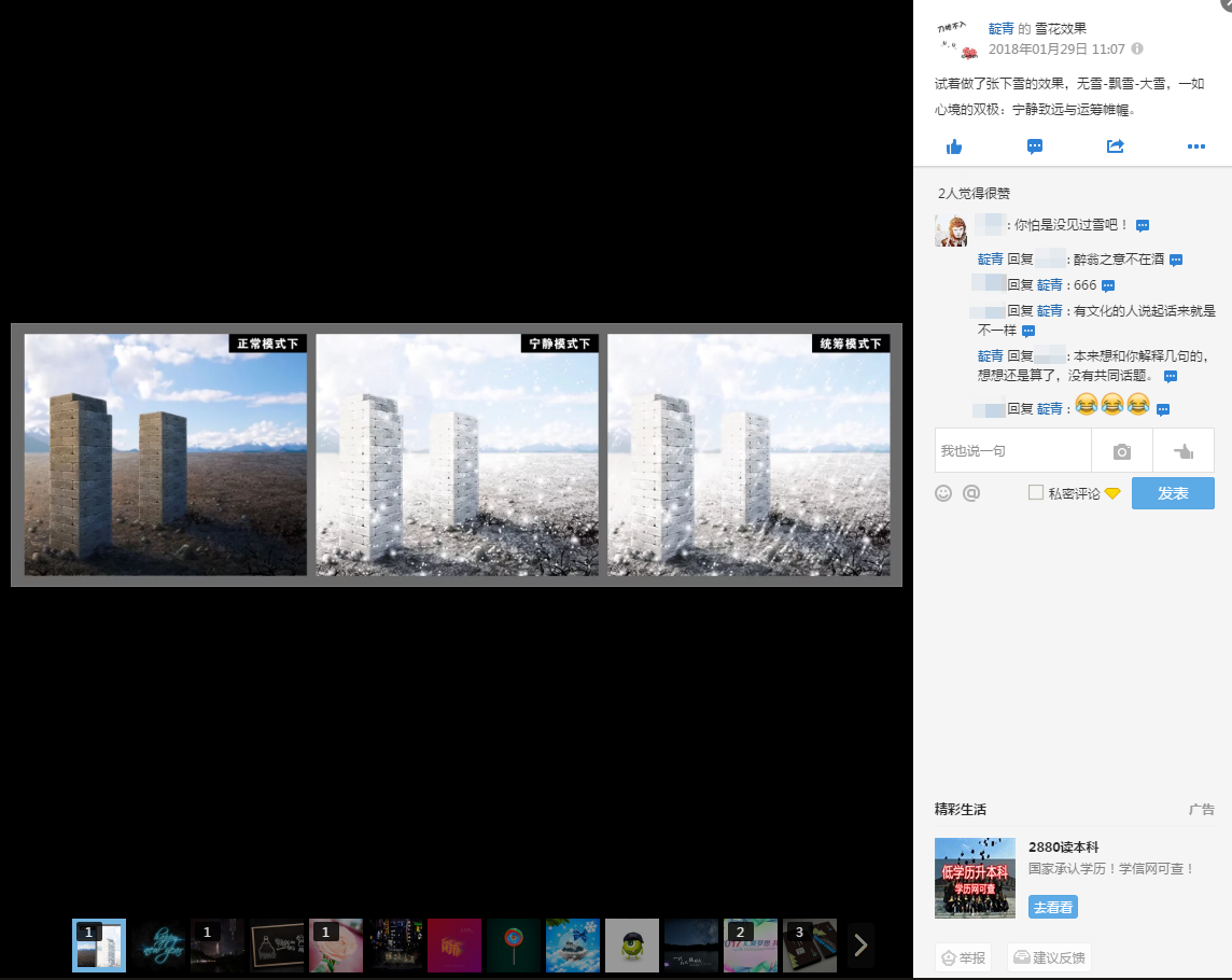 事情的起源要从前段时间做的一张飘雪效果的练习说起。