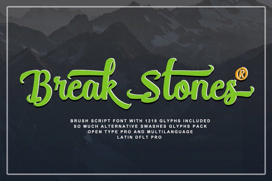 Break Stones是一种独特的笔刷字体。复古的风格设计可以创造完美的Logo,标题,网页设计视觉图和贺卡设计等。字体也包括超过1200个字形可以供你选择使用。