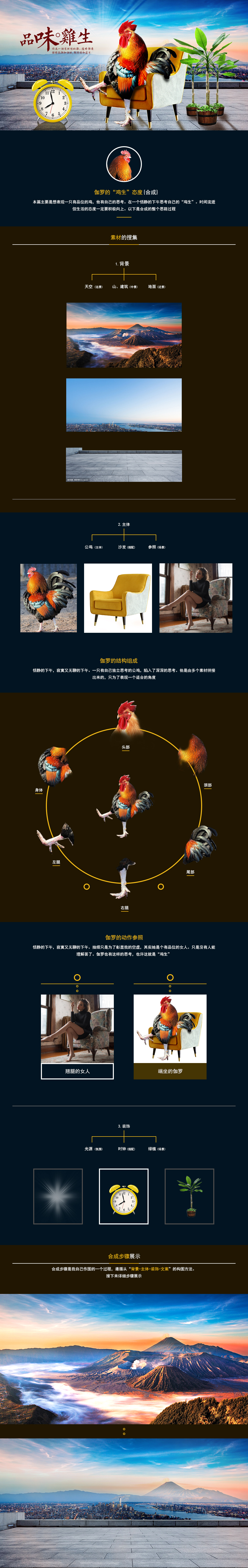 本篇主要是想表现一只有品位的鸡,他有自己的思考。在一个恬静的下午思考自己的“鸡生”。以下是合成的整个思路过程。