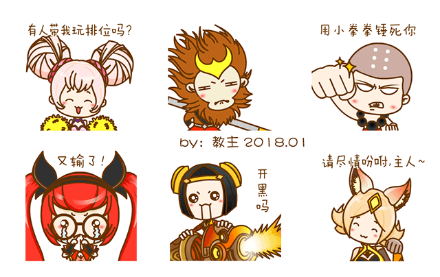这组表情是参与微信组织的王者荣耀表情大赛而设计的一些动画表情,现在均已上架