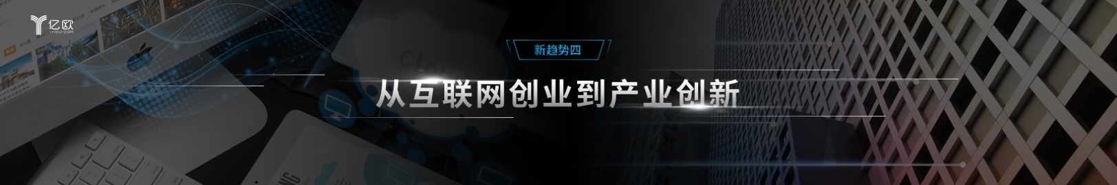 到了趋势四,从互联网创业到产业创新。我们延续使用了渐变线条,一方面让他们的整体性更强,前后呼应。更重要的是,我们加入了从左向右趋势的线条之后,辅以代表互联网和产业创新的两张背景图,让观众在看这页的时候可以更加直观地体会到一种变迁。