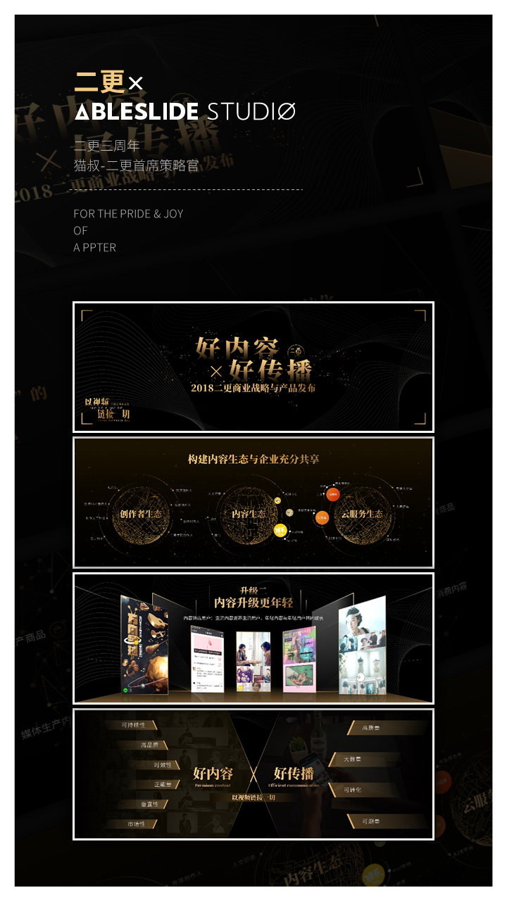 作为一家顶级发布会 PPT 设计公司,我们并没有一味追求技艺的精进,而是在此基础上,还深入地了解我们的每一位客户,每一场活动,站在客户的角度替他们用可视化的设计方式,向观众传递观点和情感。