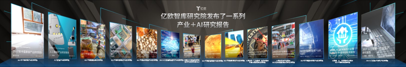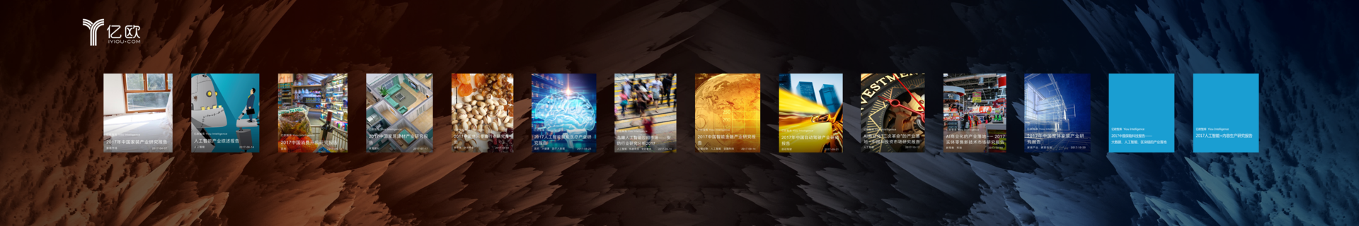 做这一页的时候我们首先确定,这一页讲者想要讲述亿欧智库研究院过过去发布了一系列的产业+AI研究报告,而且在演讲过程中会具体点到几份报告的名字,所以这页多图片的设计不能用图片墙,而是需要把图片清楚地排列开。