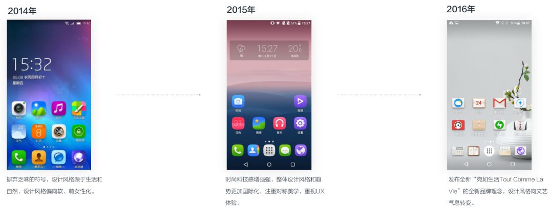 通过调研TCL手机设计演变,帮助了解品牌历史对手机ROM GUI设计影响。“宛如生活”全新的品牌理念,设计风格向文艺气息转变。