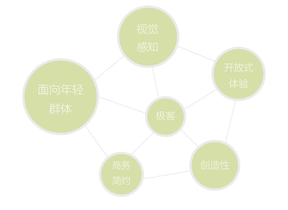 以方圆的组合卡片来表达,轻盈清爽。