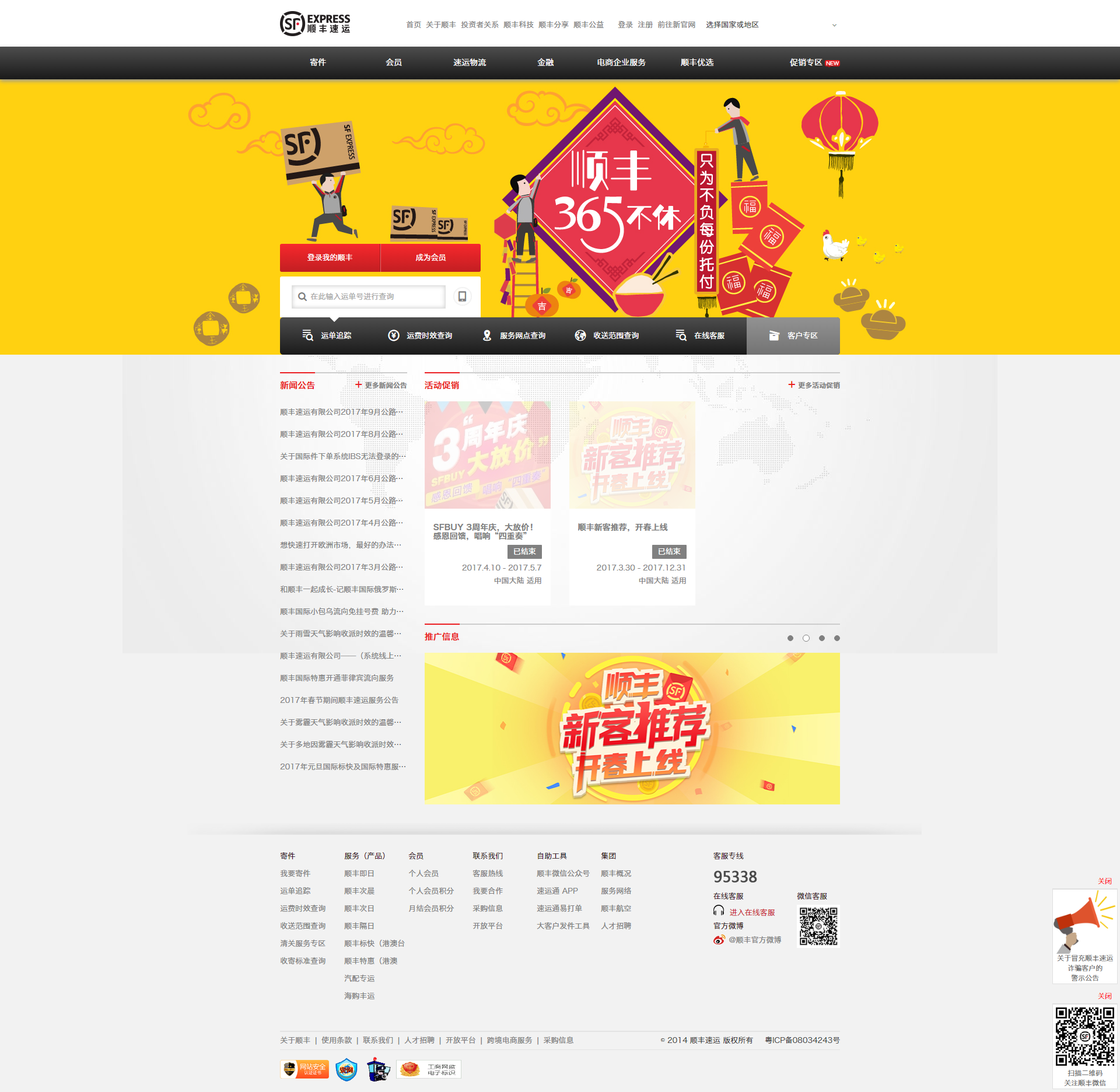 好了,今个儿看到了圆通的网页,原本到此为止了,感慨一番,然后励志我未来也要朝着这个方向发展。然后好死不死想到顺丰发展这么好,应该会做得更棒吧。我记得印象中的官网也凑合,点开重温下?嗯?