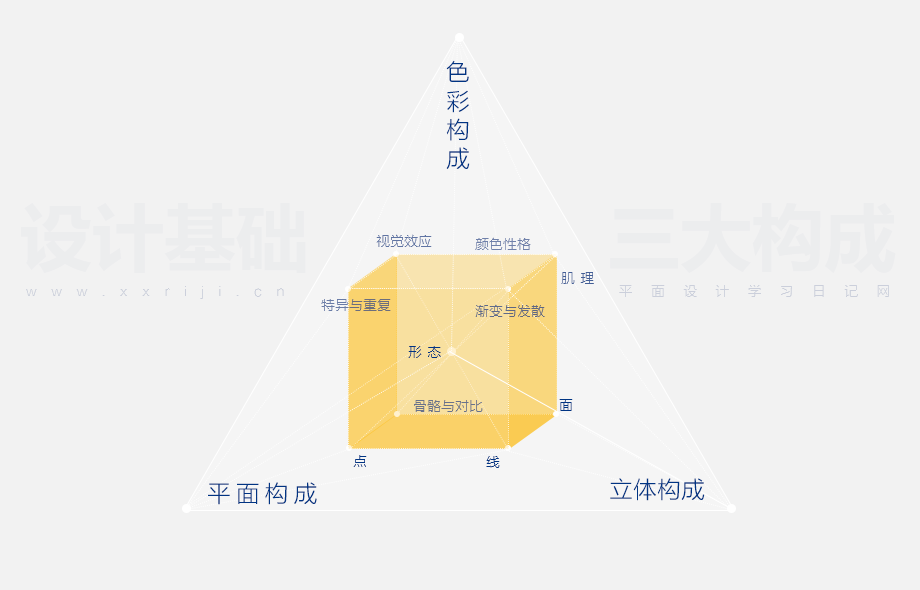 △三大构成即:平面构成、立体构成、色彩构成。是现代艺术设计的基石。