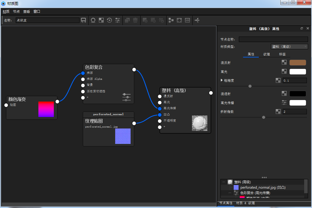 我这里用塑料高级材质模拟的皮质点状凹凸材质。