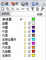 拿到这个耳机模型以后,我们首先要做的第一件事,就是在犀牛里面分好图层,这样我们导入到keyshot里,才能更好的给每个部件添加材质。