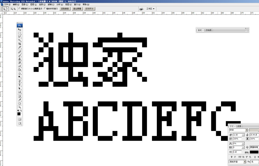 1。选择宋体 12px 或者14px 模式选择“无”,然后打出想要的字。