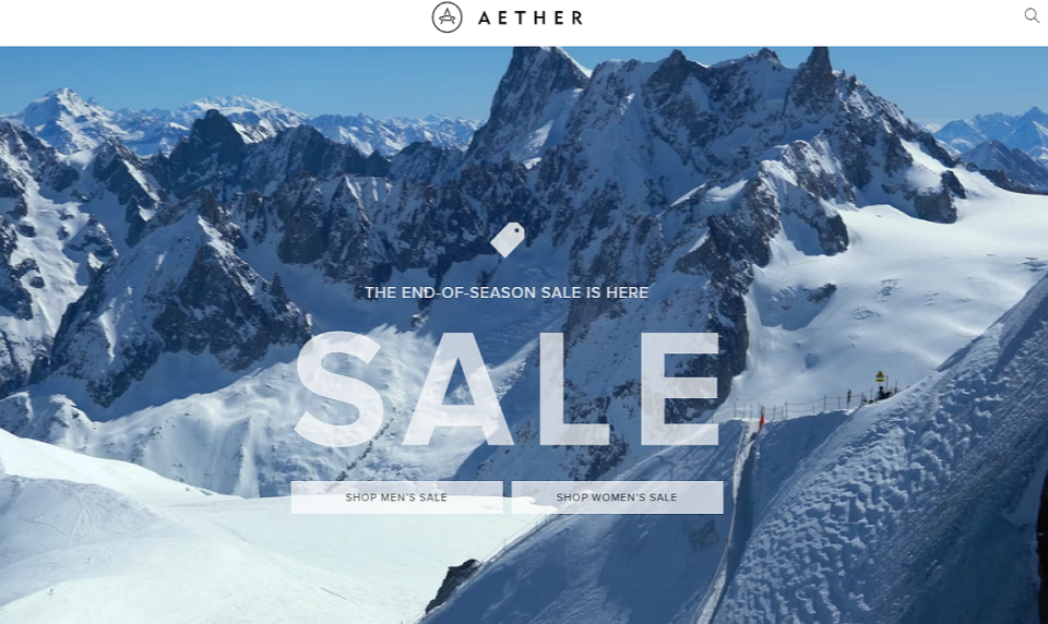 Aether是一个出售户外运动装备的网站。整个网站是以白色为基调的全屏网页设计,利用精心挑选的背景图片来突出户外场景,加上合理的页面布局来展示整个网站的主题内容,让人流连忘返。