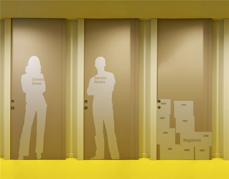 标牌的设计针对年轻用户,以清晰实用为主要功能。设计师自然地将标牌纳入文化中心,以适应整个建筑。大型象形符号应用于每一个标识元素中,一系列的尺寸为文化中心提供直观有效的引导功能,并创造了一个令人愉快、活跃的环境。
