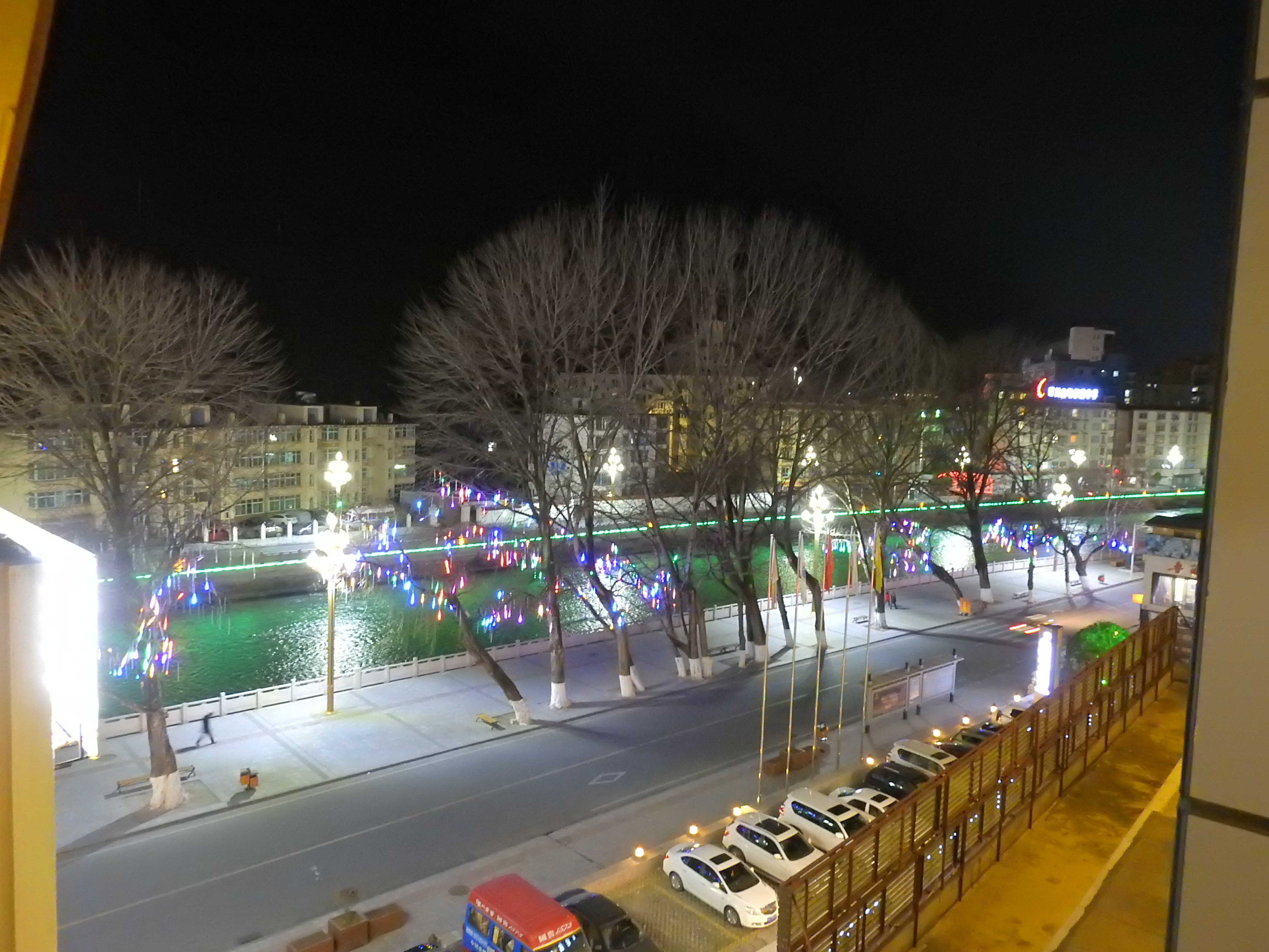 一层意思,指的是画面颜色看起来不杂乱。一张照片,存在的颜色过于多、过于花哨,看起来会杂乱无章。不管在前期拍摄还是后期修图的环节,正确的思路是画面中存在的杂色越少越好。我们来看一个反例,如下图,夜晚街道,我们不难发现,画面中颜色很多,造成远处河流看起很杂乱。