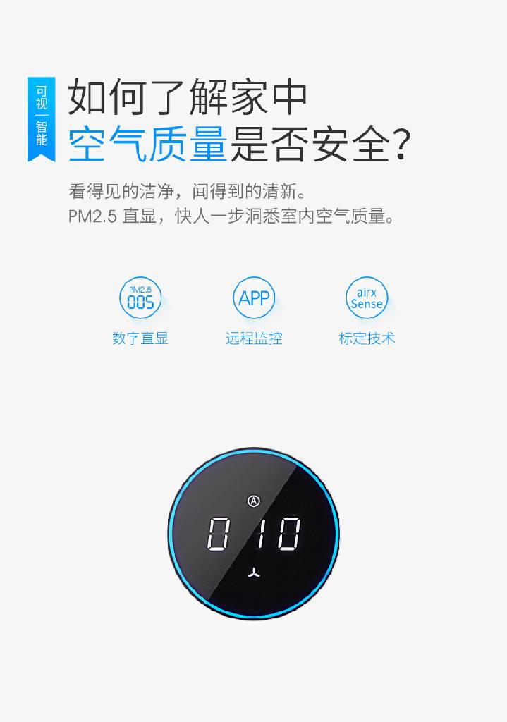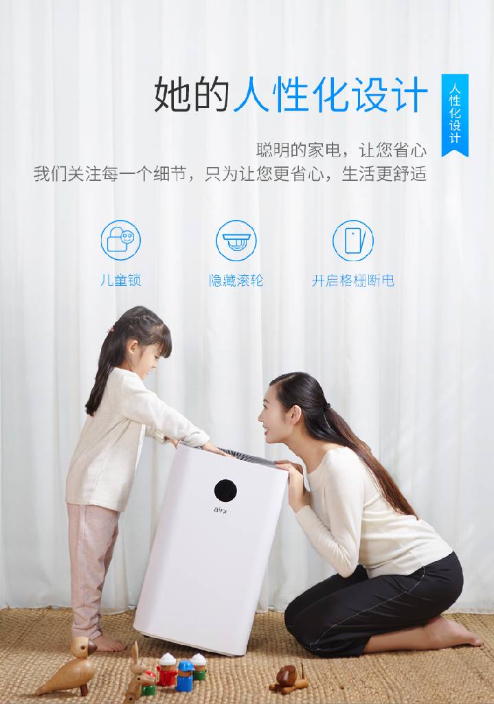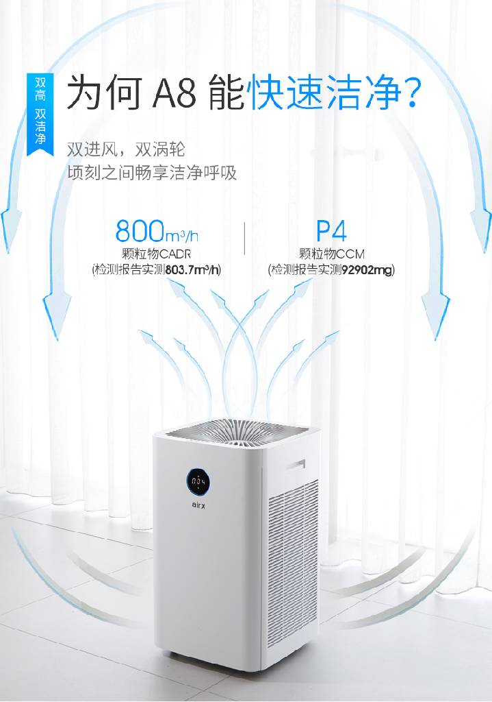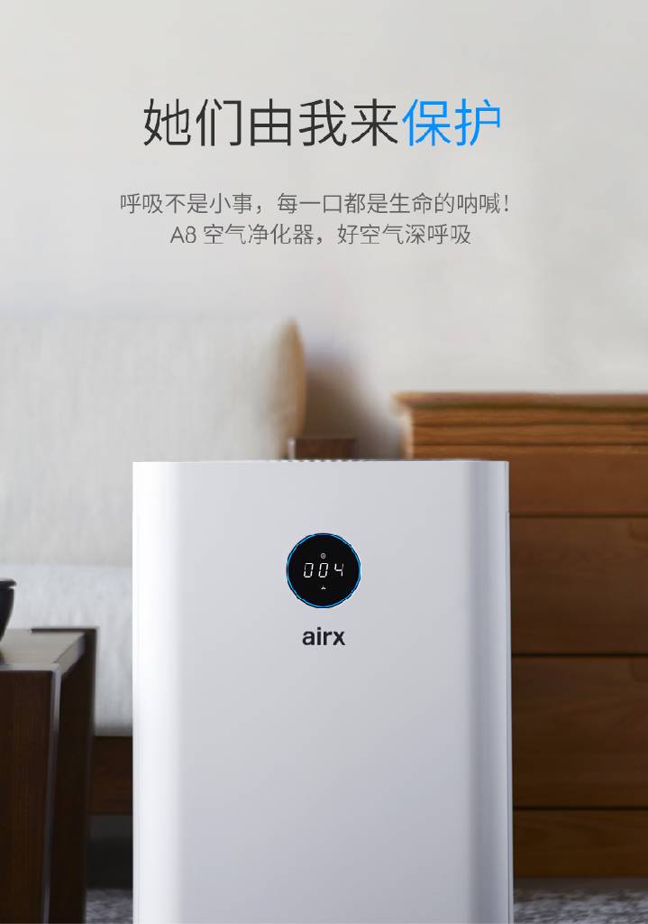 结合产品特点我司品牌airx空气净化器的定位就是——净化快,噪音低