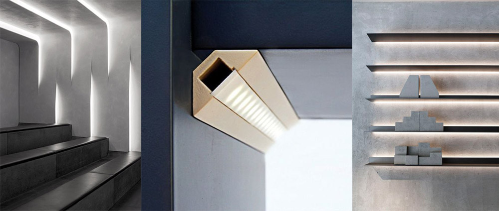 这里的LED灯带一般是泛指所有使用条状LED灯组做出来的灯槽或者灯带。