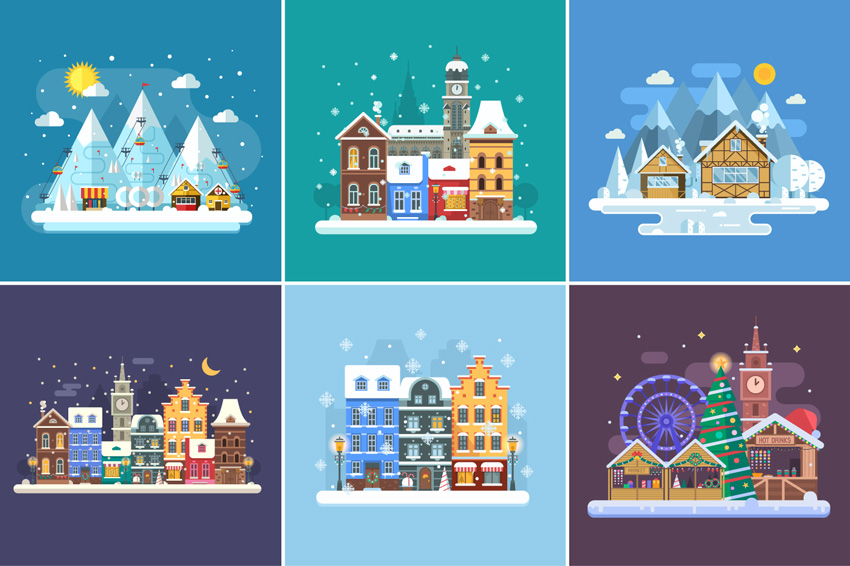 做得好!我们设法创造了一个时髦的平面式冬季城市景观。现在我们准备好了圣诞假期!