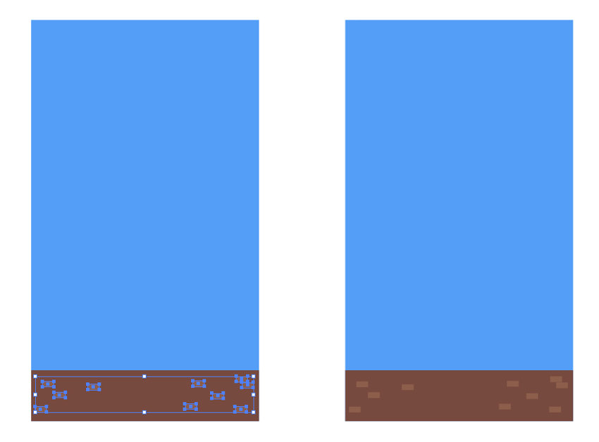 创建一个小的棕色(#8a5e48)矩形,它将充当砖块。通过复制并拖拽它们,模仿纹理将砖块铺在建筑物底部的棕色部分上。