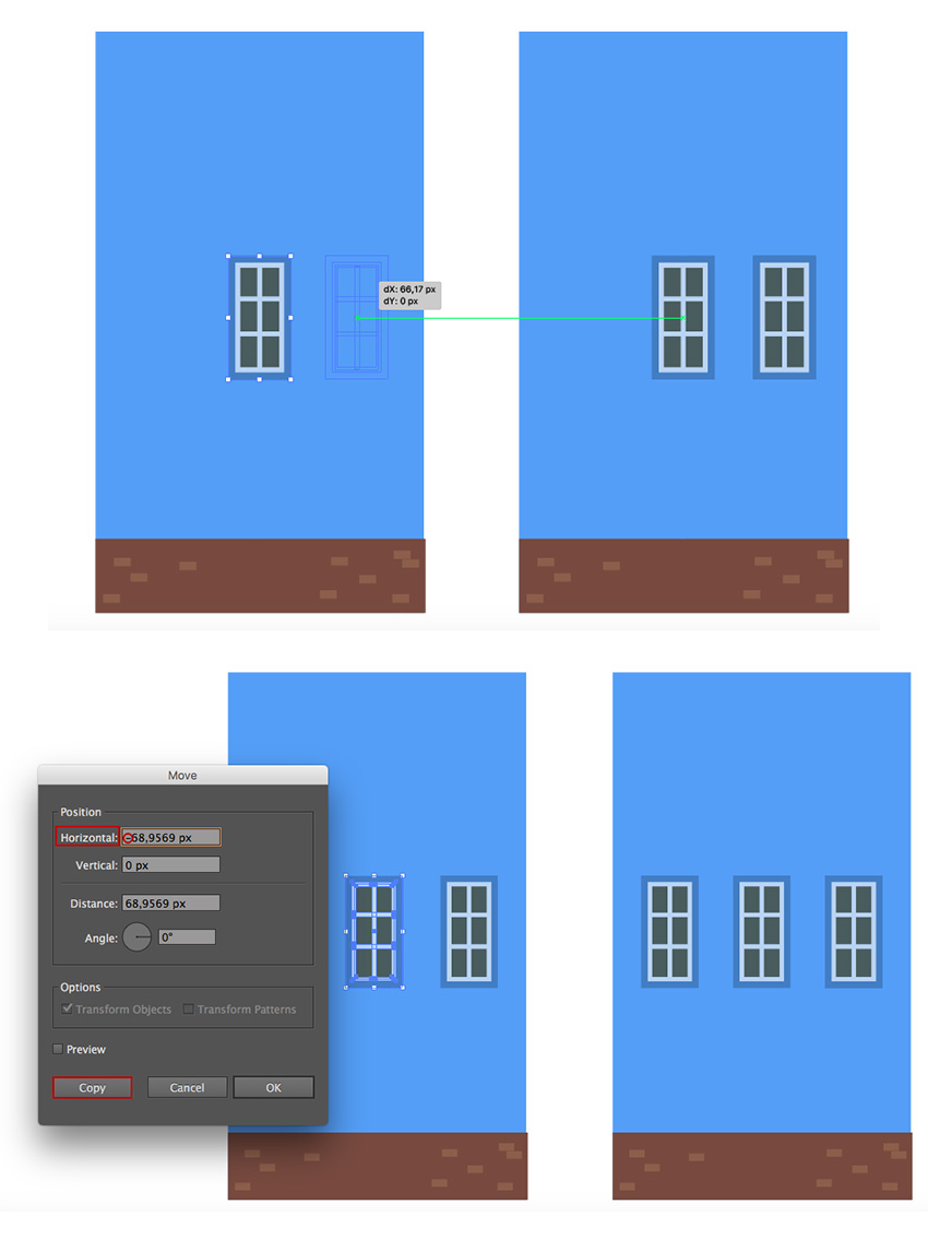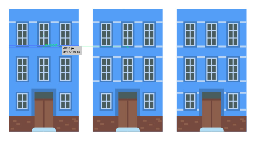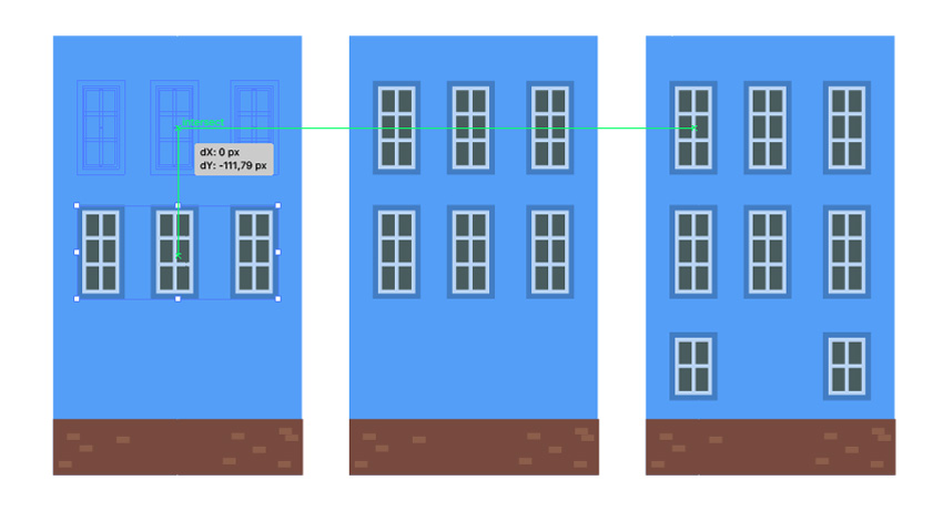 制作更多的窗户副本,并将其排列在任何对称的立面上,让您感觉很有趣。