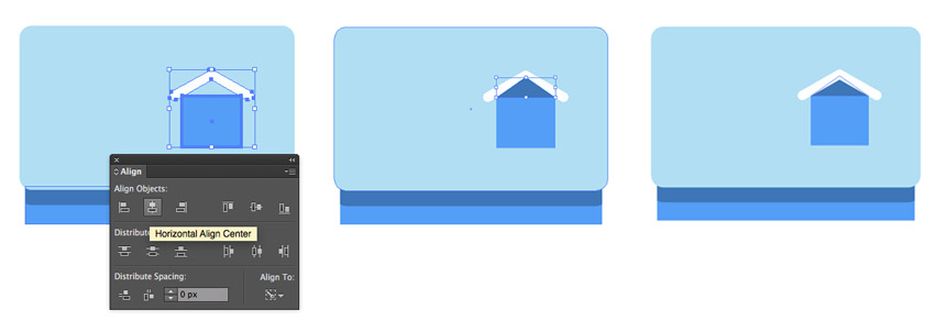 使用选择工具(V)选择两种形状 ,按住 Alt 键并单击蓝色形状。选择变得更厚,表示您现在正在对齐 关键对象。前往“ 对齐” 面板并单击“ 水平对齐中心” 按钮。
