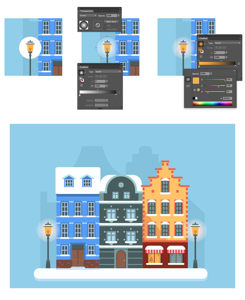 Illustrator中创建冬季城市场景