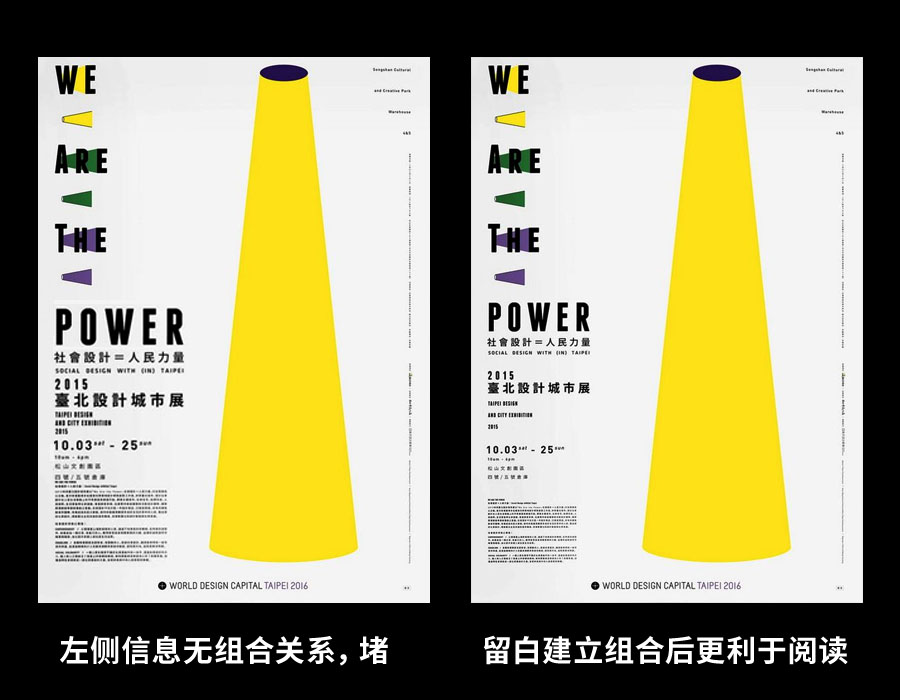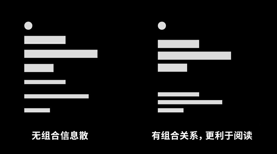 组合是区分两组信息的关键,明显的组合更易于阅读,画面也更美观而有节奏感。
