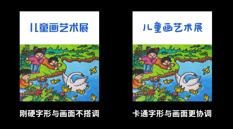 刚硬的字形显然与儿童艺术的主题相悖,而卡通字形或者圆润一点的字形则可以很好的表现。