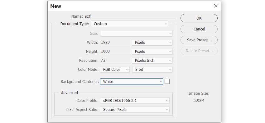 创建一个新的文档1920 x 1080 px和填补它与白色: