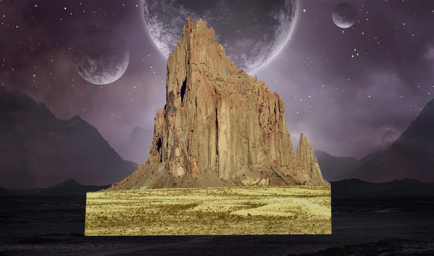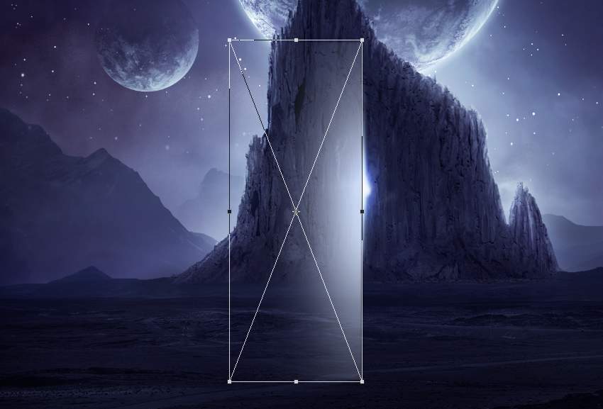 从背景,并将其剪下岩石中间的背景。使用图层蒙版与中软黑色笔刷擦掉底部和混合岩与现有的地面。