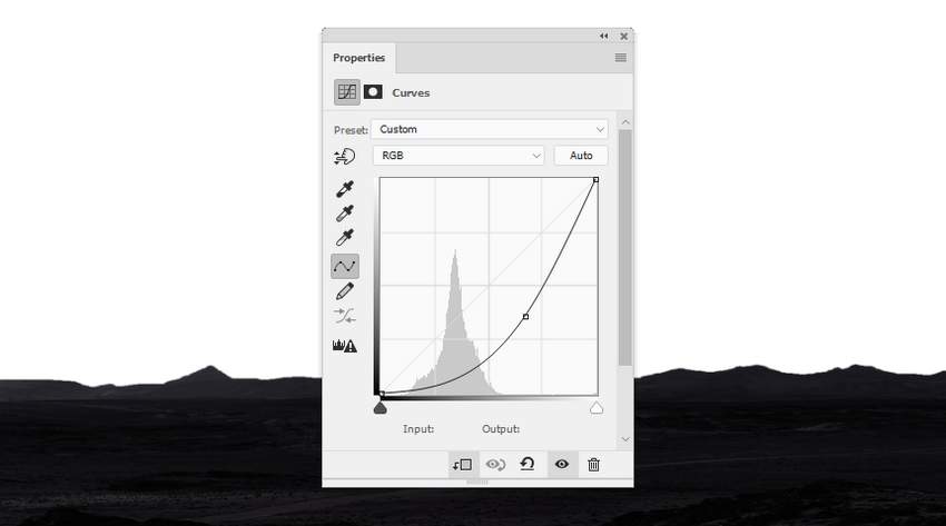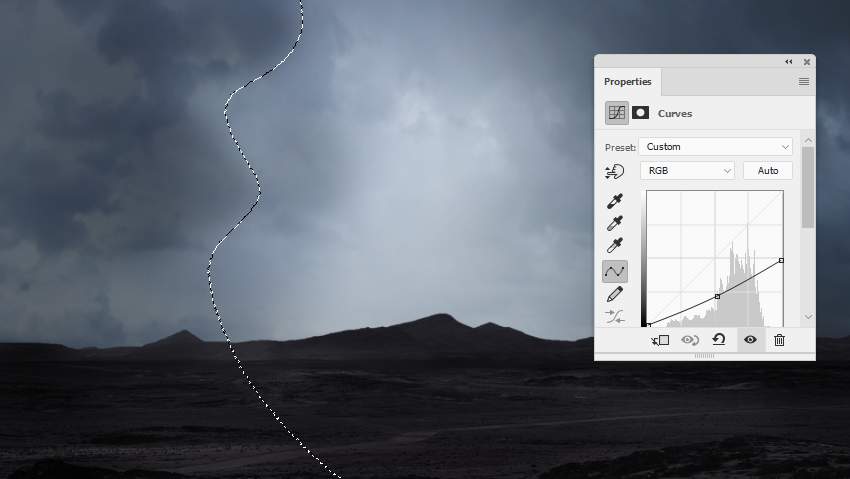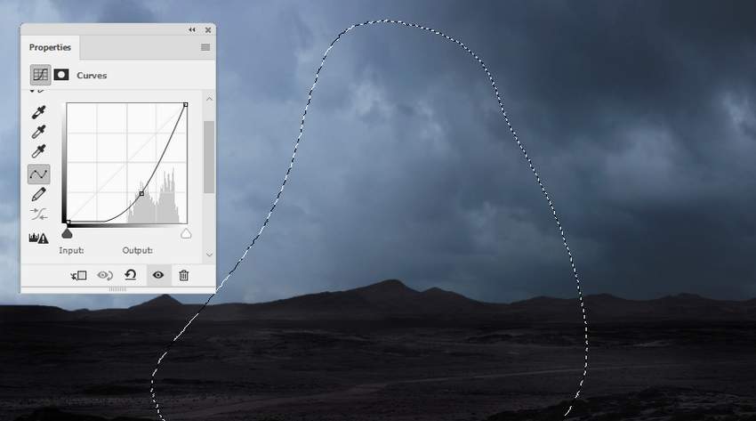 岩石看起来太亮背景相比,因此添加一个曲线调整层变黑。