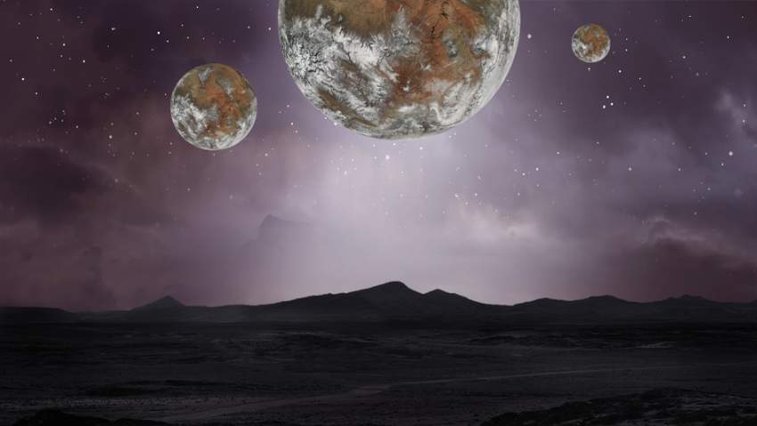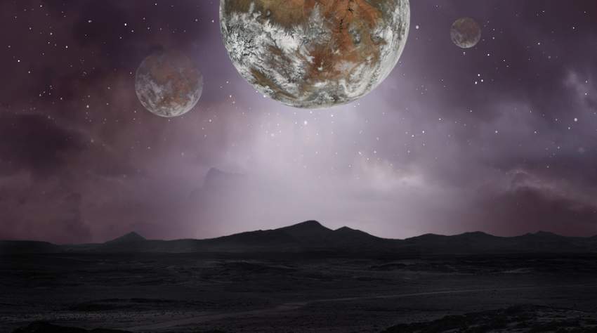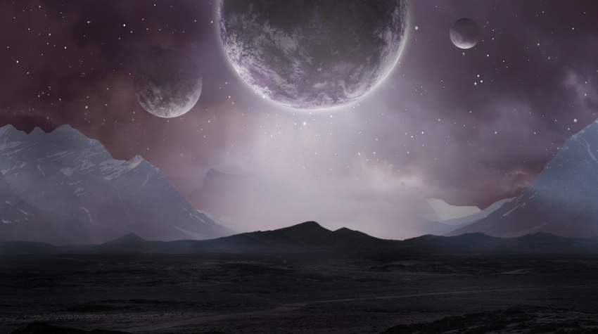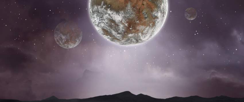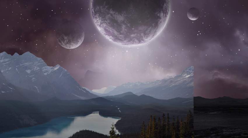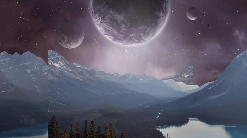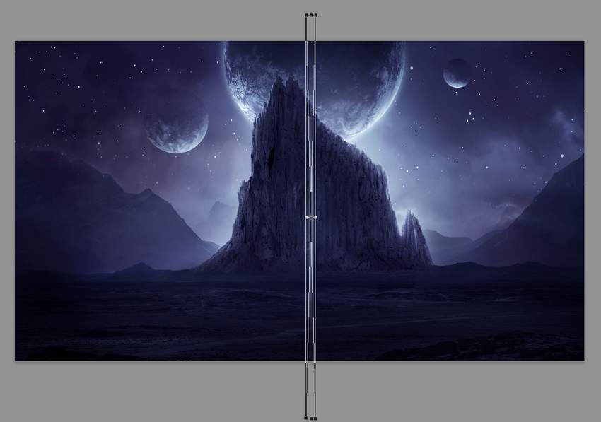 打开纹理。看看本教程了解如何使一个星球。地球拖到画布上,并将其顶部中间。复制这一层和规模两次下来,然后安排他们两边的大的。
