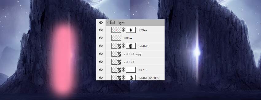 新建一个图层,用一个软刷子的颜色 #f5f7fb在现有的一个亮点。使用控制温度t和每一层使光斑出现像一个微妙的射线。
