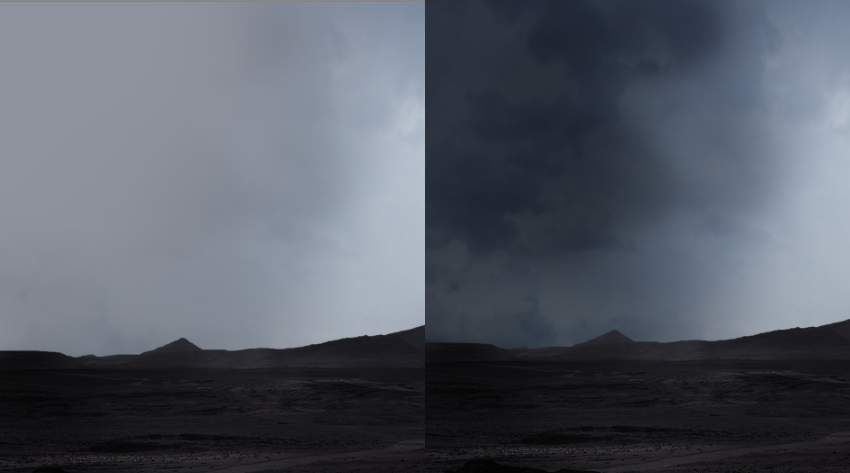 创建一个新层,改变模式为叠加100%,充满50%的灰色。使用减淡和加深工具画明亮的边缘轮廓的岩石,它应该被背景光,还有油漆岩石的更多细节。