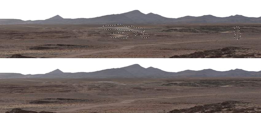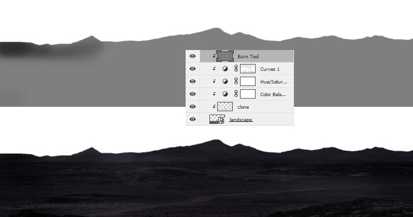 其中每一层添加一个面具和使用黑色软刷将地上的区域和减少山脉对背景的透明度。