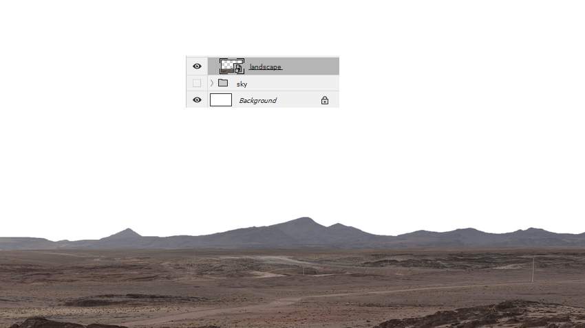 隔离山脉从天空,并将它们添加到左边的风景。降低这一层的不透明度到70%。