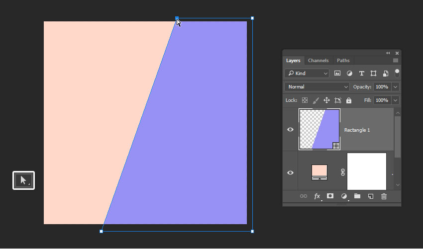 然后,选择直接选择工具,选择矩形的左上角点,然后将其拖到右侧以创建对角线。