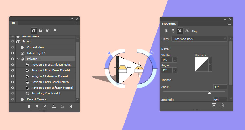 要访问3D网格设置和属性,您需要打开两个面板:3D面板和“ 属性”面板(均可在“ 窗口”菜单下找到)。