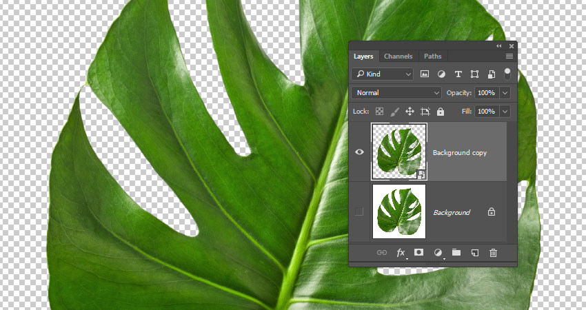 打开Monstera植物图像的热带树叶,挑选魔棒工具,单击选项栏中的添加到选择图标,然后检查连续框。