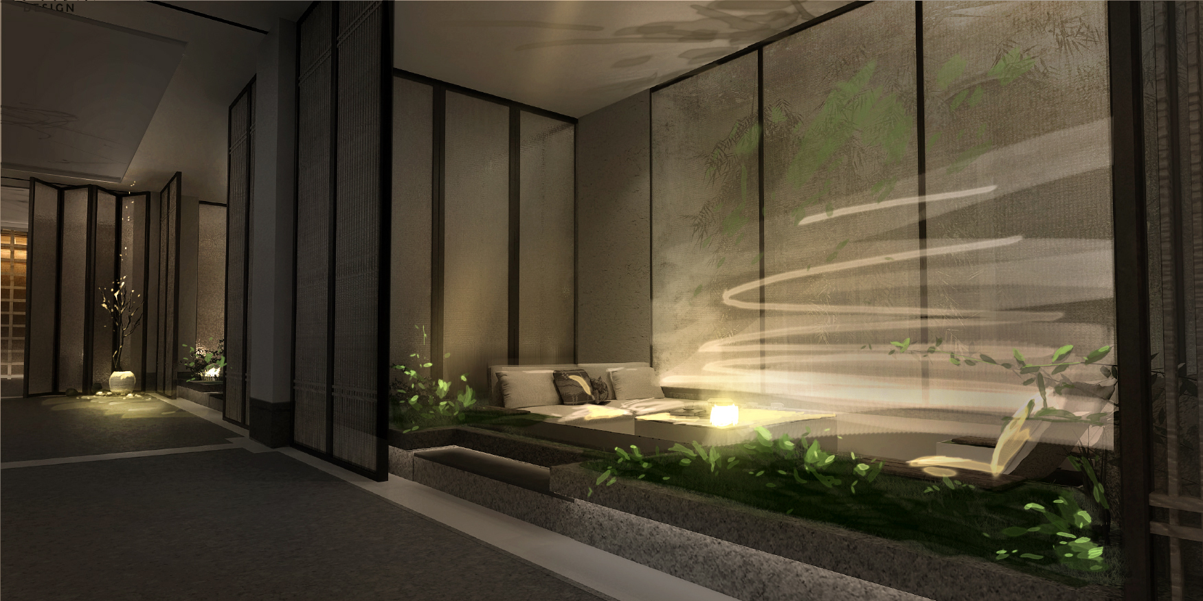 在看到建筑师的室内方案那一刻,我被设计中的禅文化所吸引,并开始想象与之相匹配的光环境。