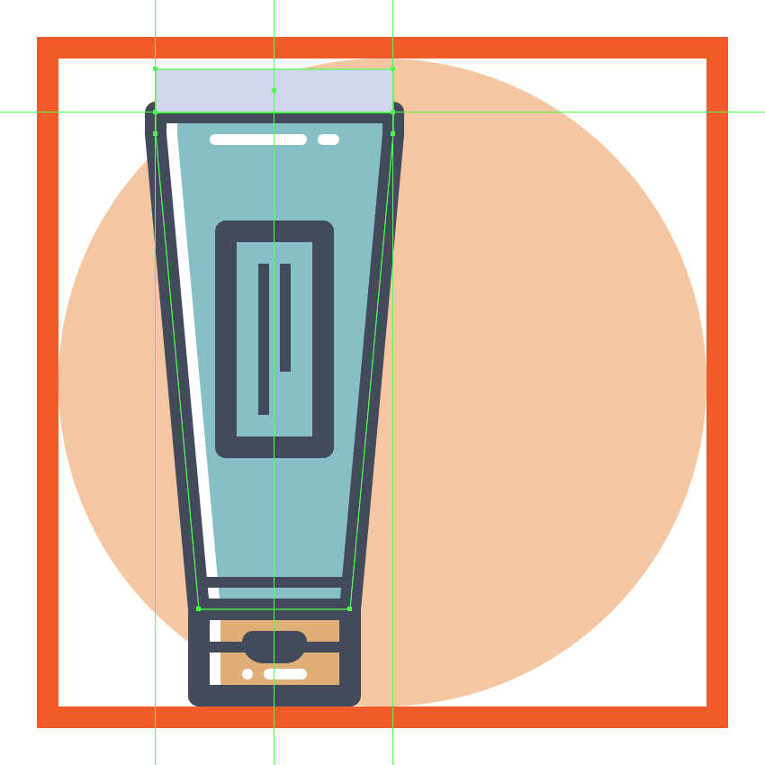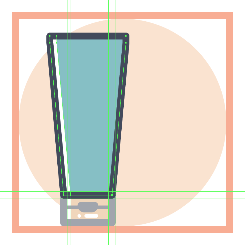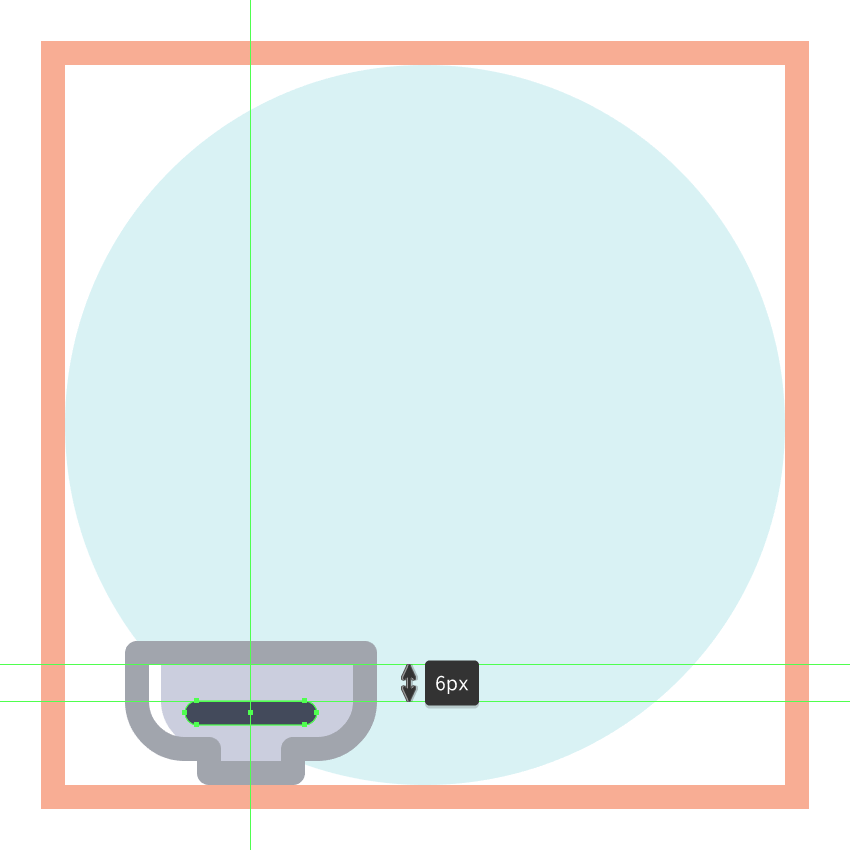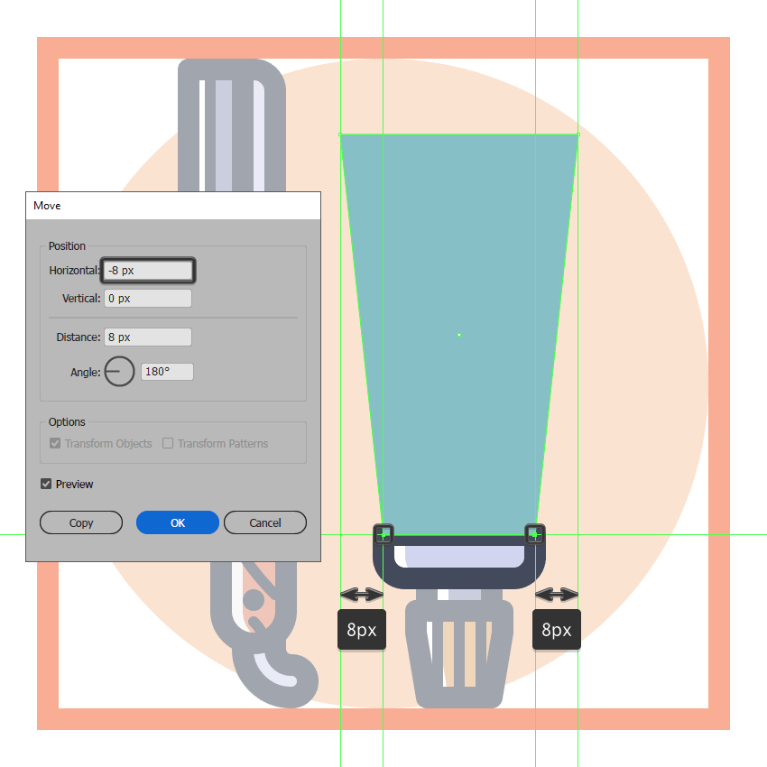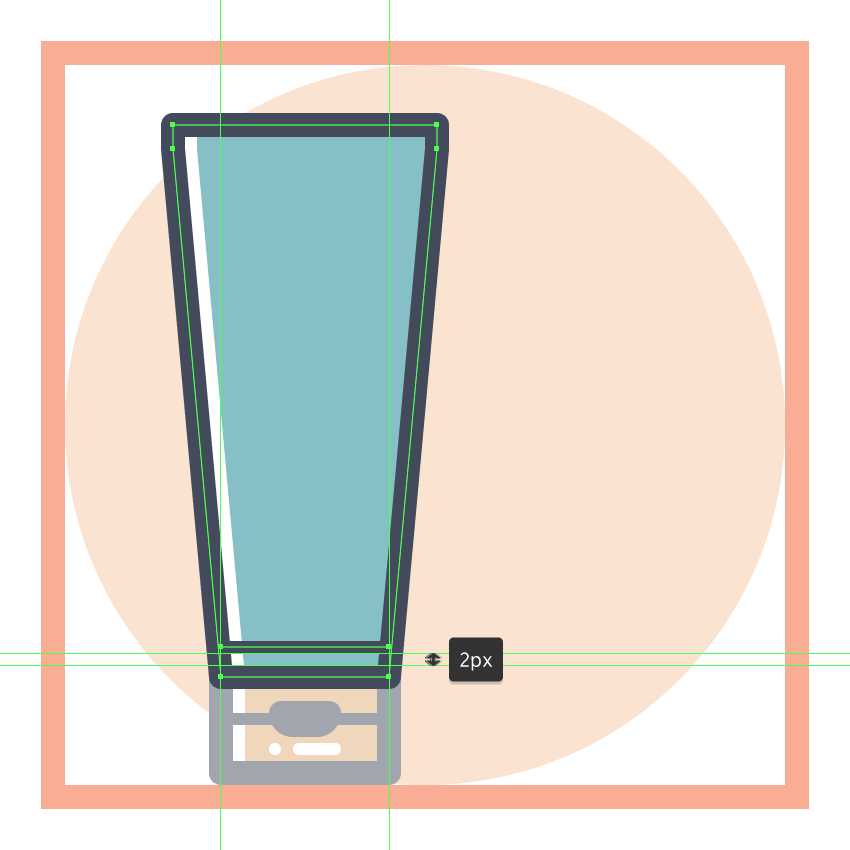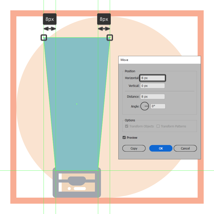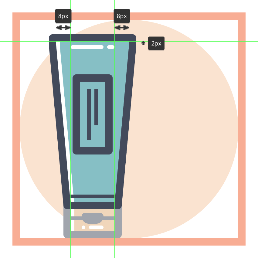 创建使用该管的主体44×74像素的矩形(#87C0C6),我们将通过分别选择并通过按压其底部锚点到内部调整 8 PX使用移动工具(右击>变换>移动>水平> + / - 8 px取决于你从哪一边开始),将结果形状放置在上一节的顶部。