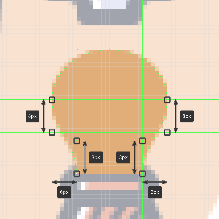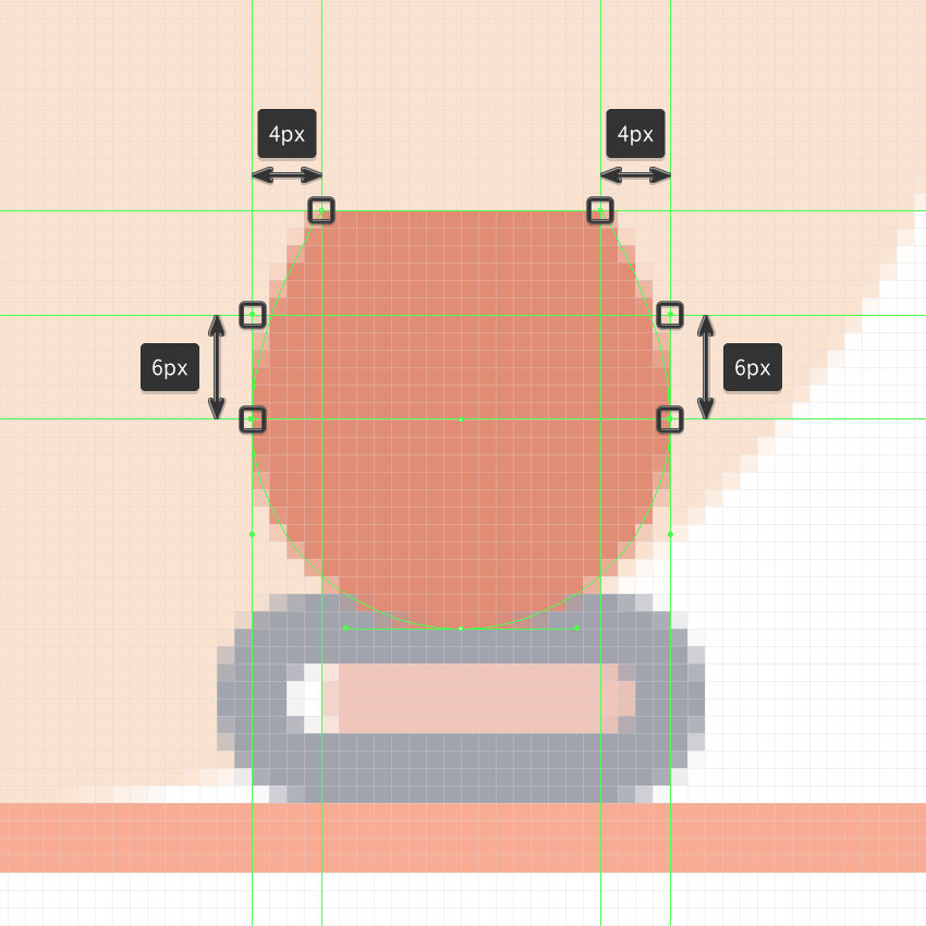 取出圆的上半部分,然后打开像素预览模式 (Alt-Control-Y), 并使用钢笔工具(P)以参考图像作为向导绘制其上半身。完成后,关闭“ 像素预览模式” (Alt-Control-Y)并继续下一步。