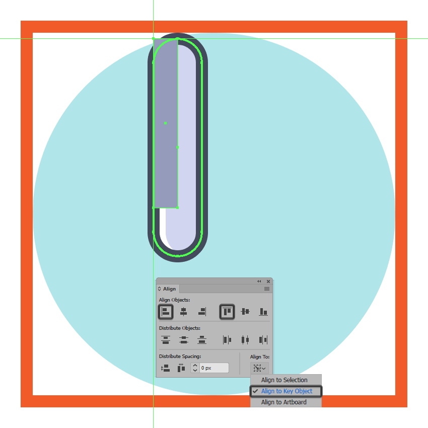使用8 x 56 px矩形创建刀片的下半部分,我们将使用此颜色#969CBC ,然后使用“ 对齐”面板对齐底层填充形状的左上角。