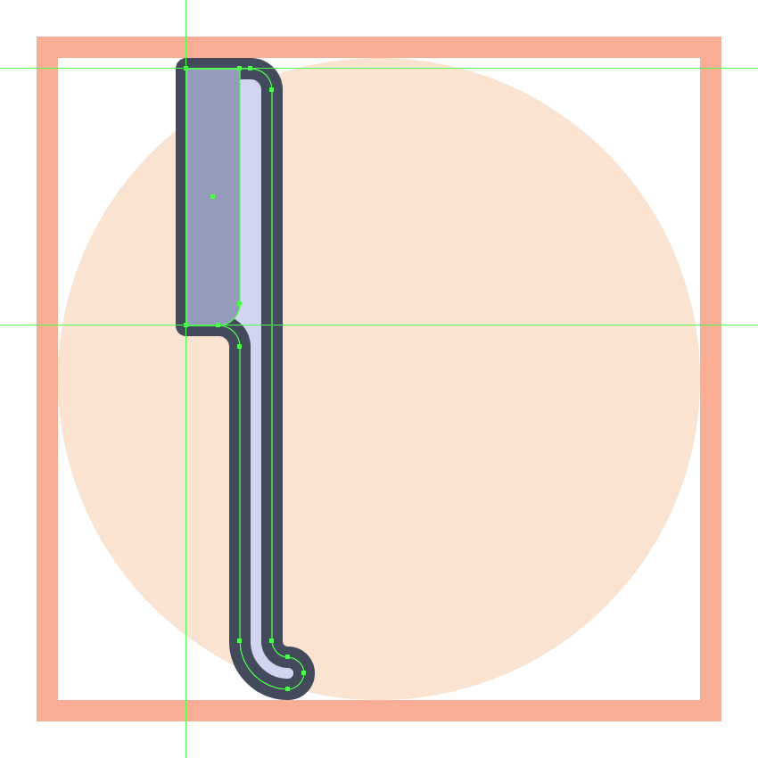 用圆形连接 将刀片左侧的高光(#FFFFFF)和4 px厚的轮廓(#41485B)放在其后,然后在高光右侧放置一个48像素高的2 px厚垂直分隔符()。慢慢来,一旦完成,使用Control-G 键盘快捷键选择并将所有四种形状组合在一起。#41485B