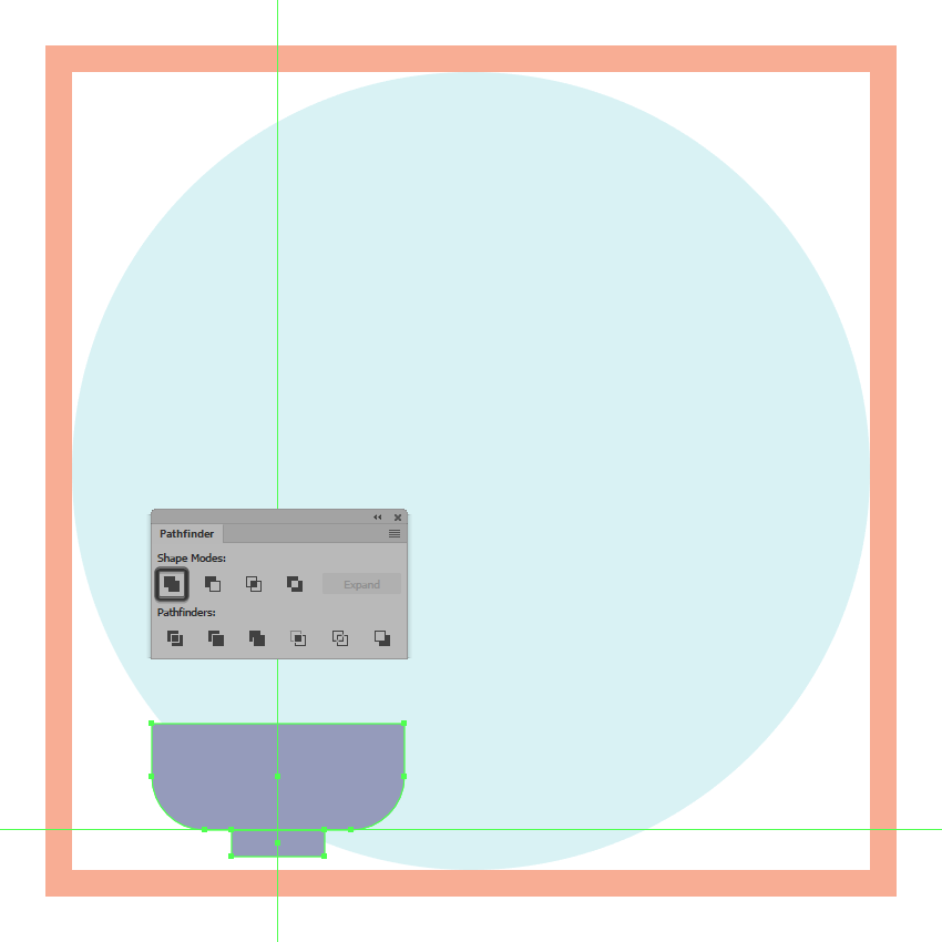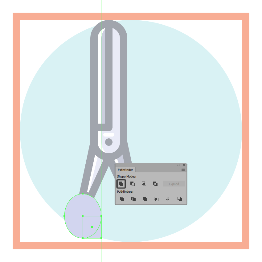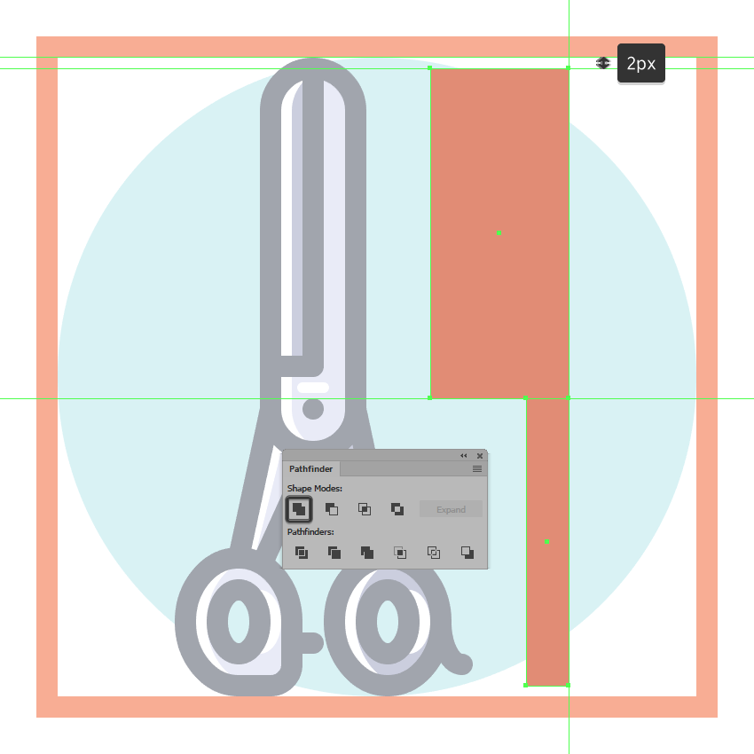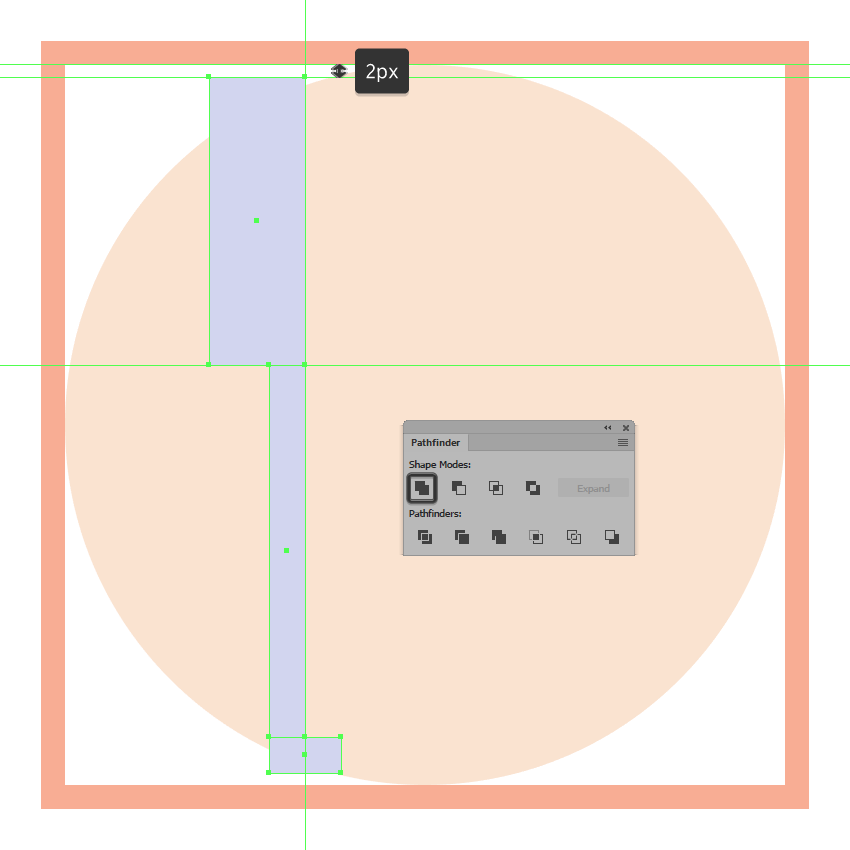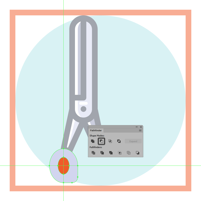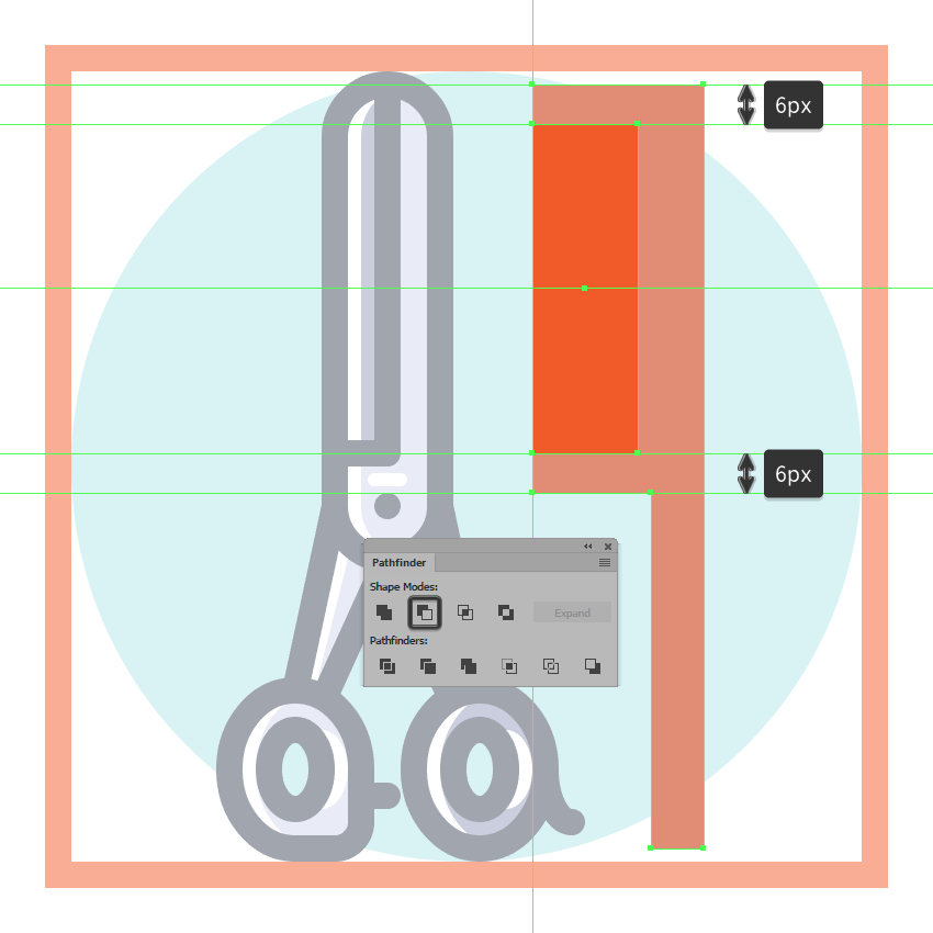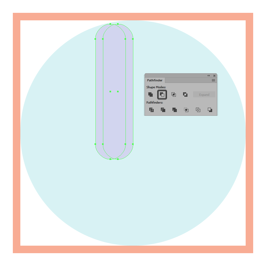 一旦你有了副本,选择他们两个,然后使用探路者的减号正面形状模式,以从下面的一个剪下顶部,确保将生成的形状的颜色更改为白色(#FFFFFF)。