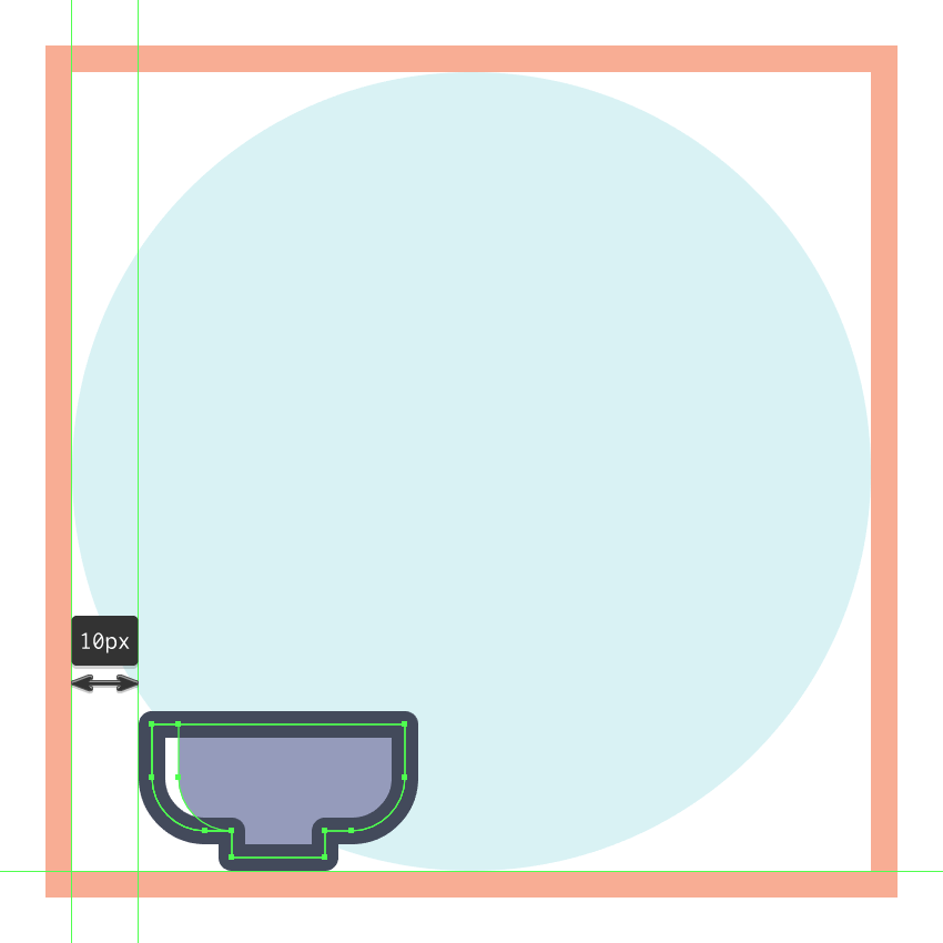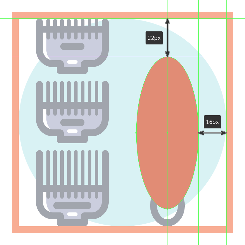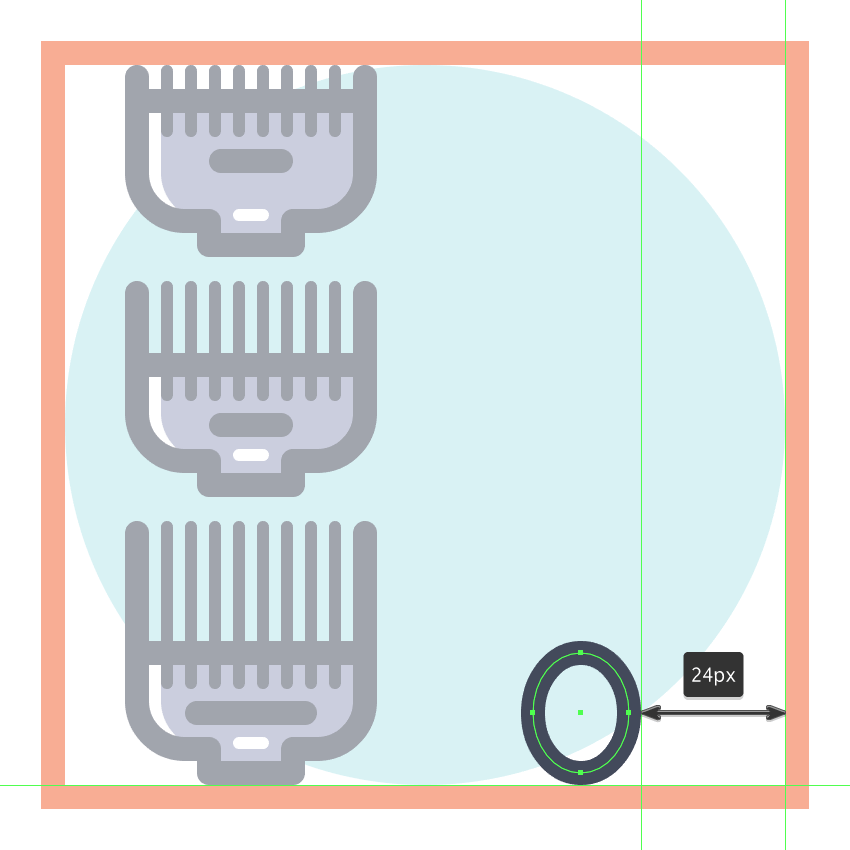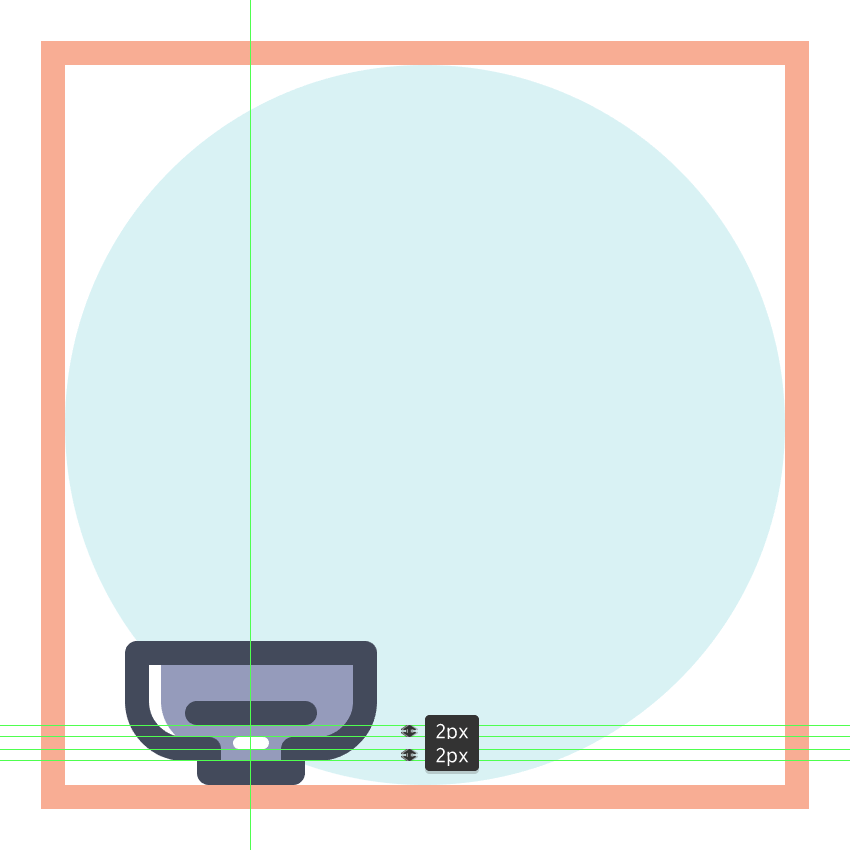 使用120 x 120像素的圆圈创建背景,我们将使用这个圆圈进行着色#B2E7EA,然后居中对齐到第三个有效绘图区域。